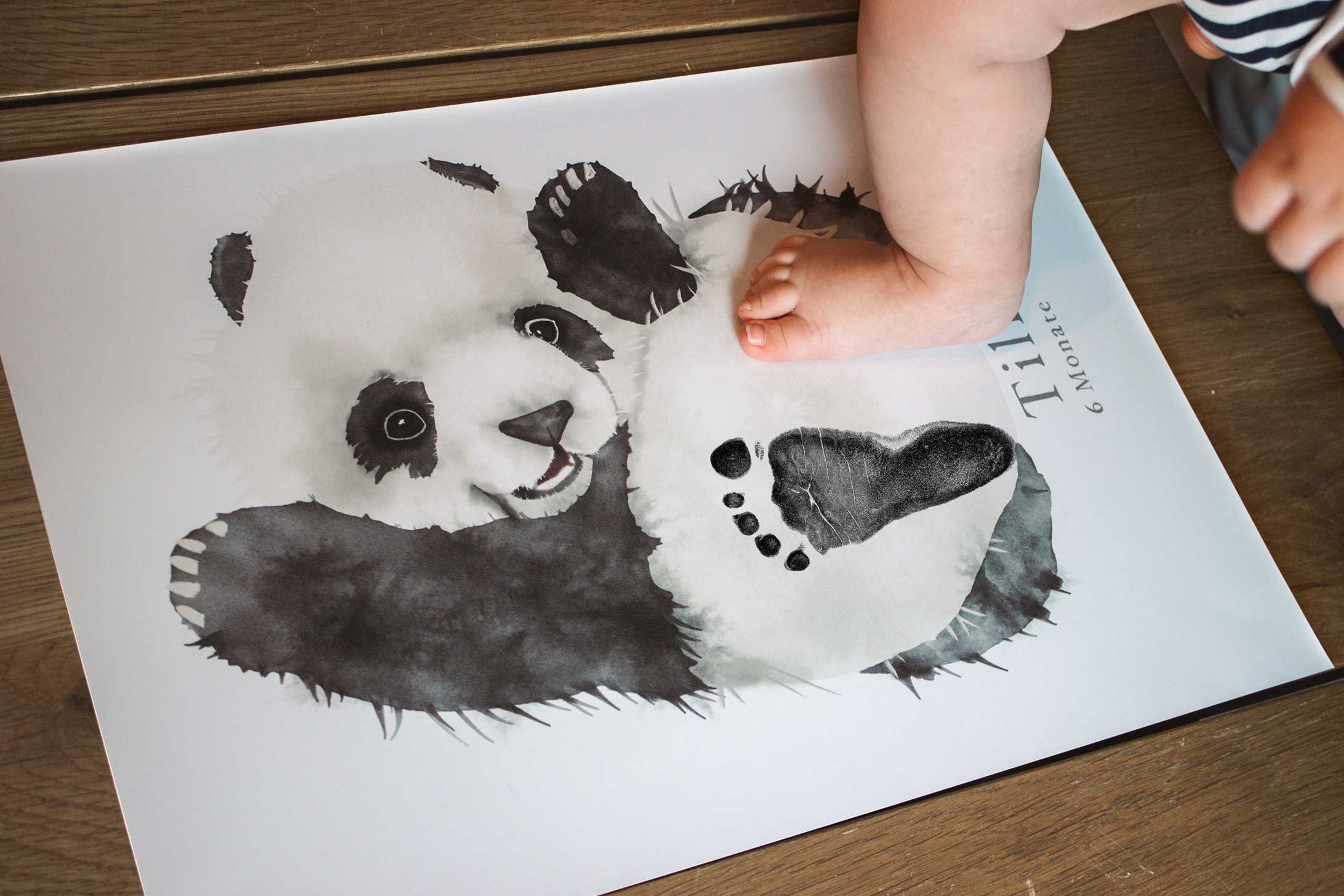 👶Baby Gift Personalized, Footprint Set, Mural Baby & Children's Room Animals, Panda