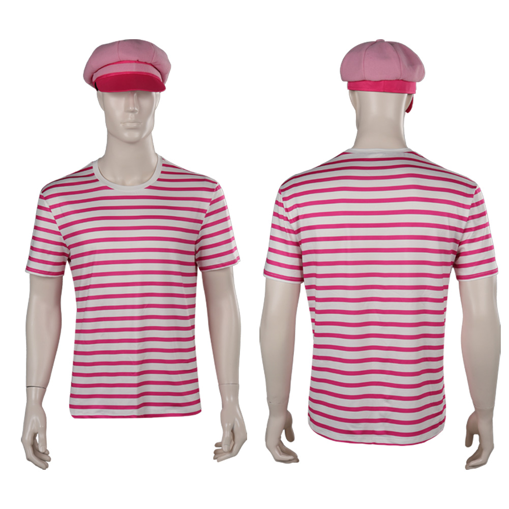 Movie 2023 Barbie Ken Pink Striped T-shirt Hat Outfits Halloween Carnival Suit Cosplay Costume
