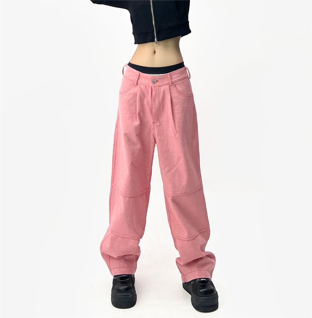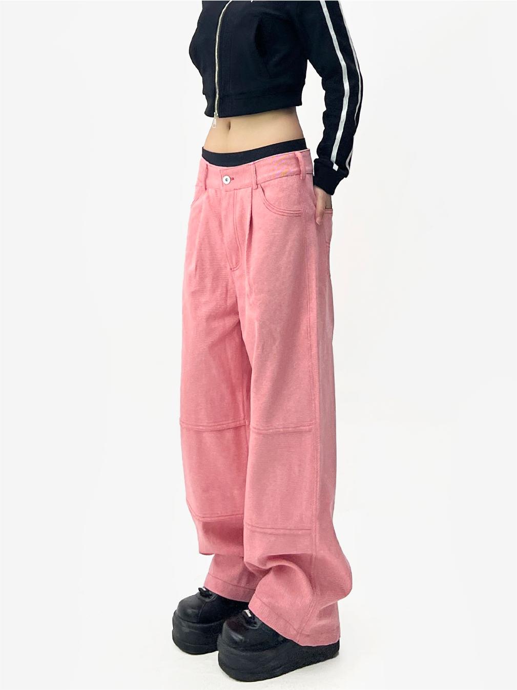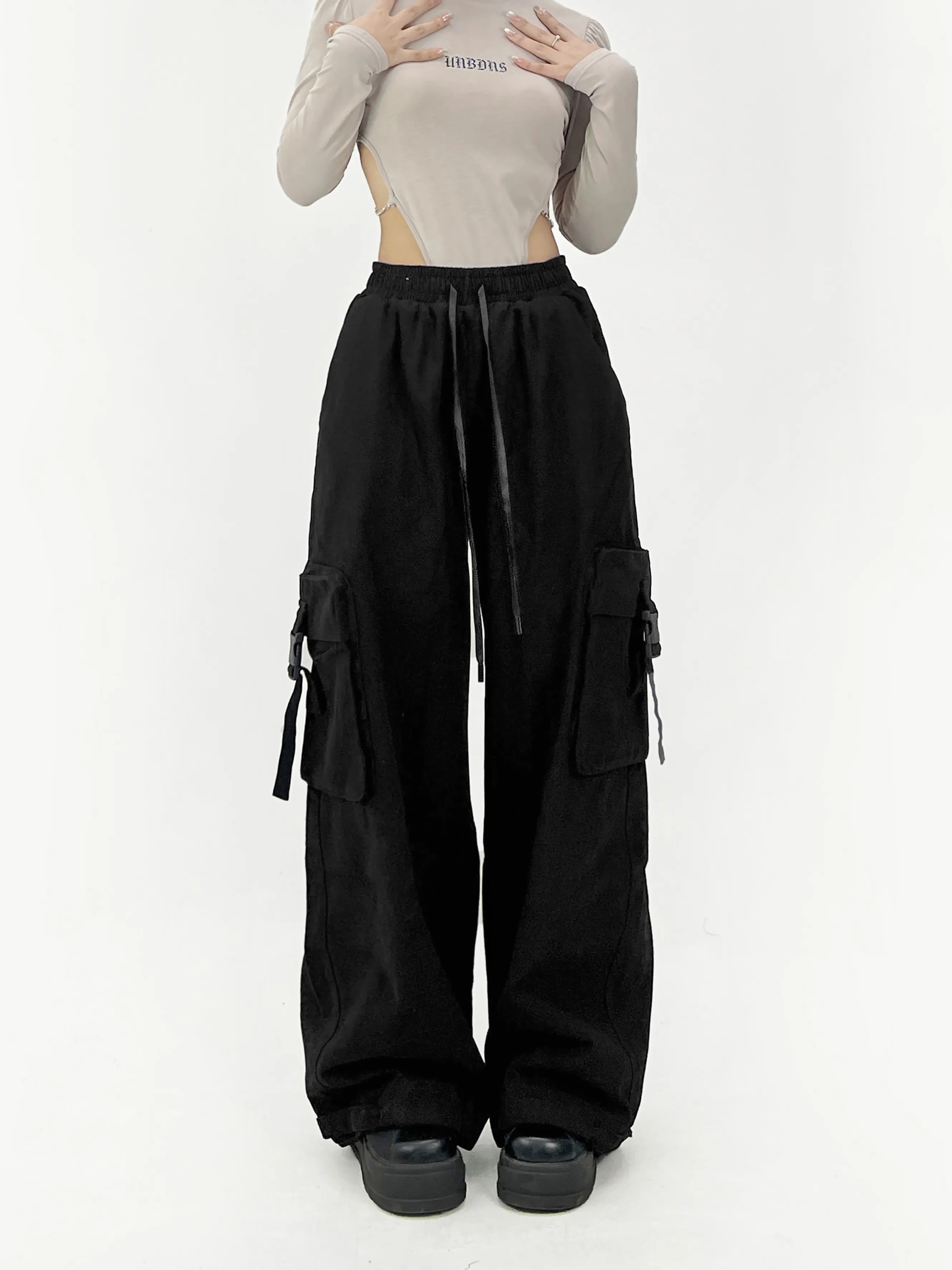 Large pocket overalls / black thin spring and summer women's loose wide-leg cargo pants