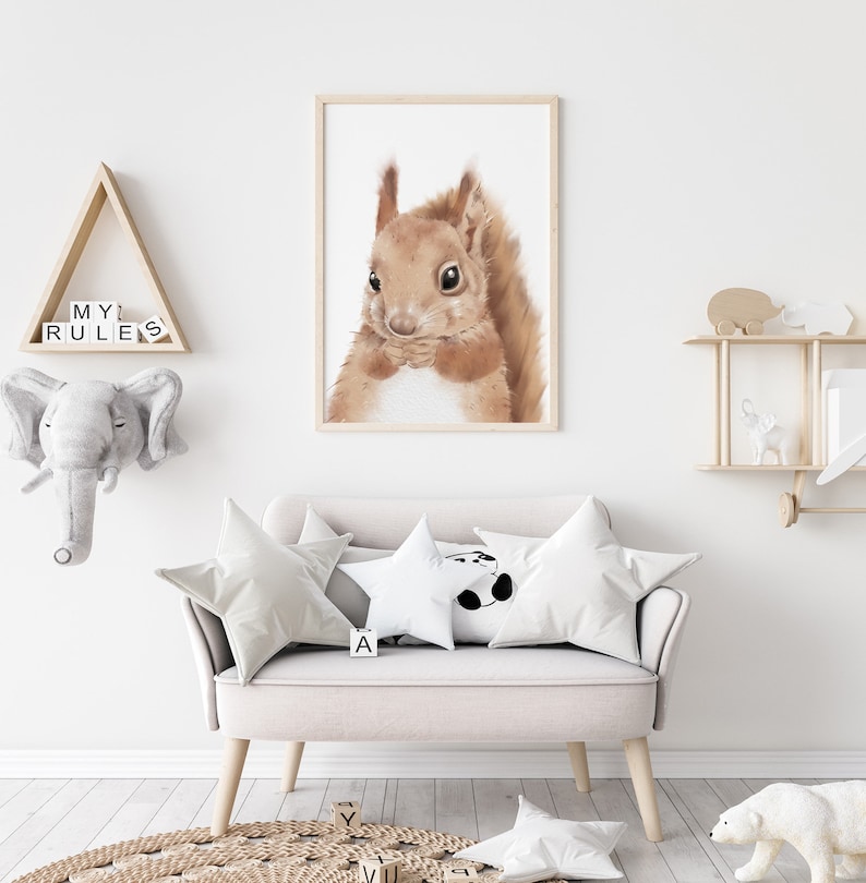 Our squirrel poster for children's rooms and baby rooms as wall decoration.