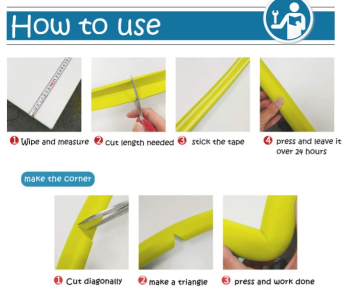 - Products using double-sided tape can be firmly adhered to the desktop, protect baby from accident hit. Before installation, be sure to clean the surface of the adherend. If it is greasy, dust, or moisture, it will be difficult to stick as expected. The plaster wall, brick wall and tempered glass may be slightly less sticky.