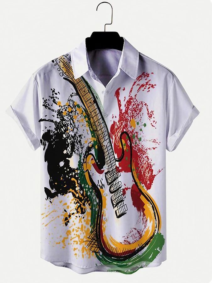 Music Element Print Men'S Casual Vacation Shirt