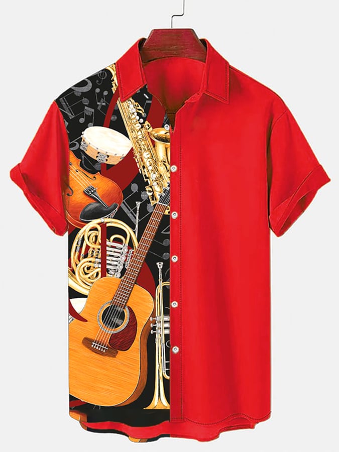 Men's Music Guitar Print Casual Short Sleeve Hawaiian Shirt