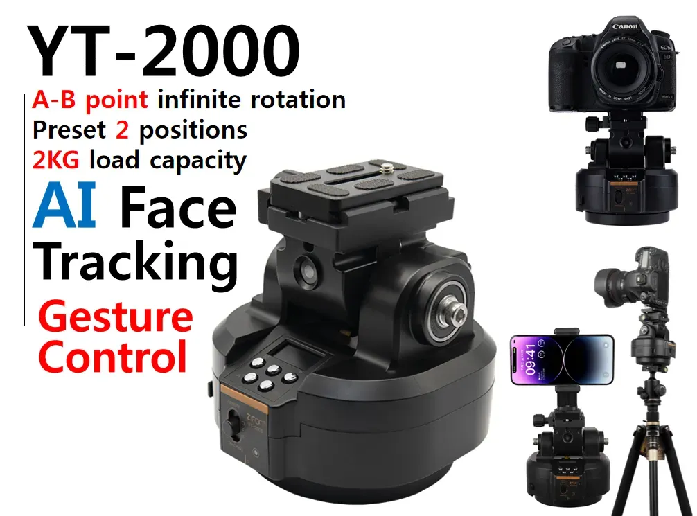 3��[Convenient] The shooting remote control tripod uses 2.4G technology with a long remote control distance and strong anti-interference capability. This allows you to easily and accurately control the movement of your camera in every plane, achieving better shooting or video recording effects. The YT-2000 is equipped with an AI intelligent chip for facial recognition control. more smooth, more silent and easier operation.